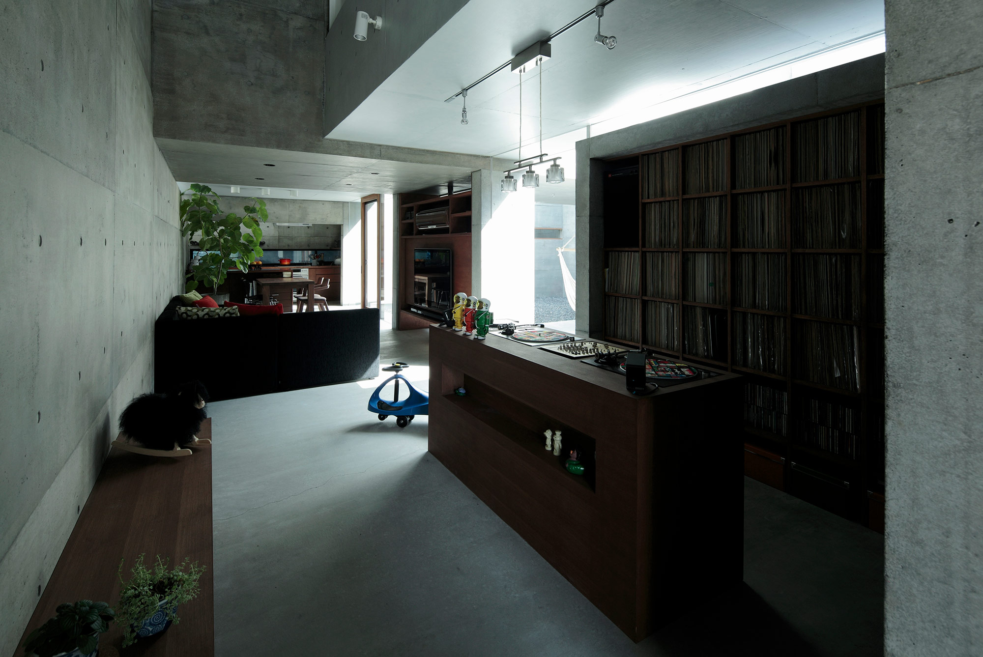 建主はDJを趣味とする夫妻で、家の中でも自由に音楽を楽しめる住宅を望んでいた。