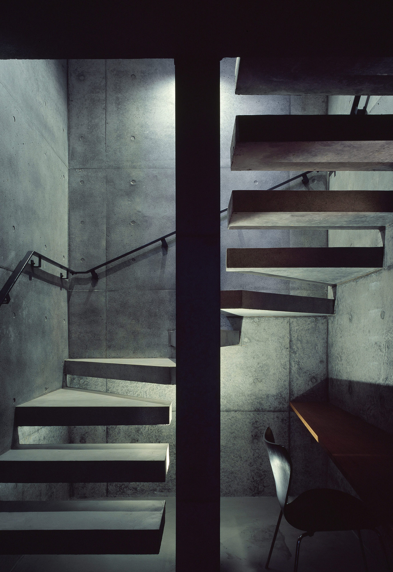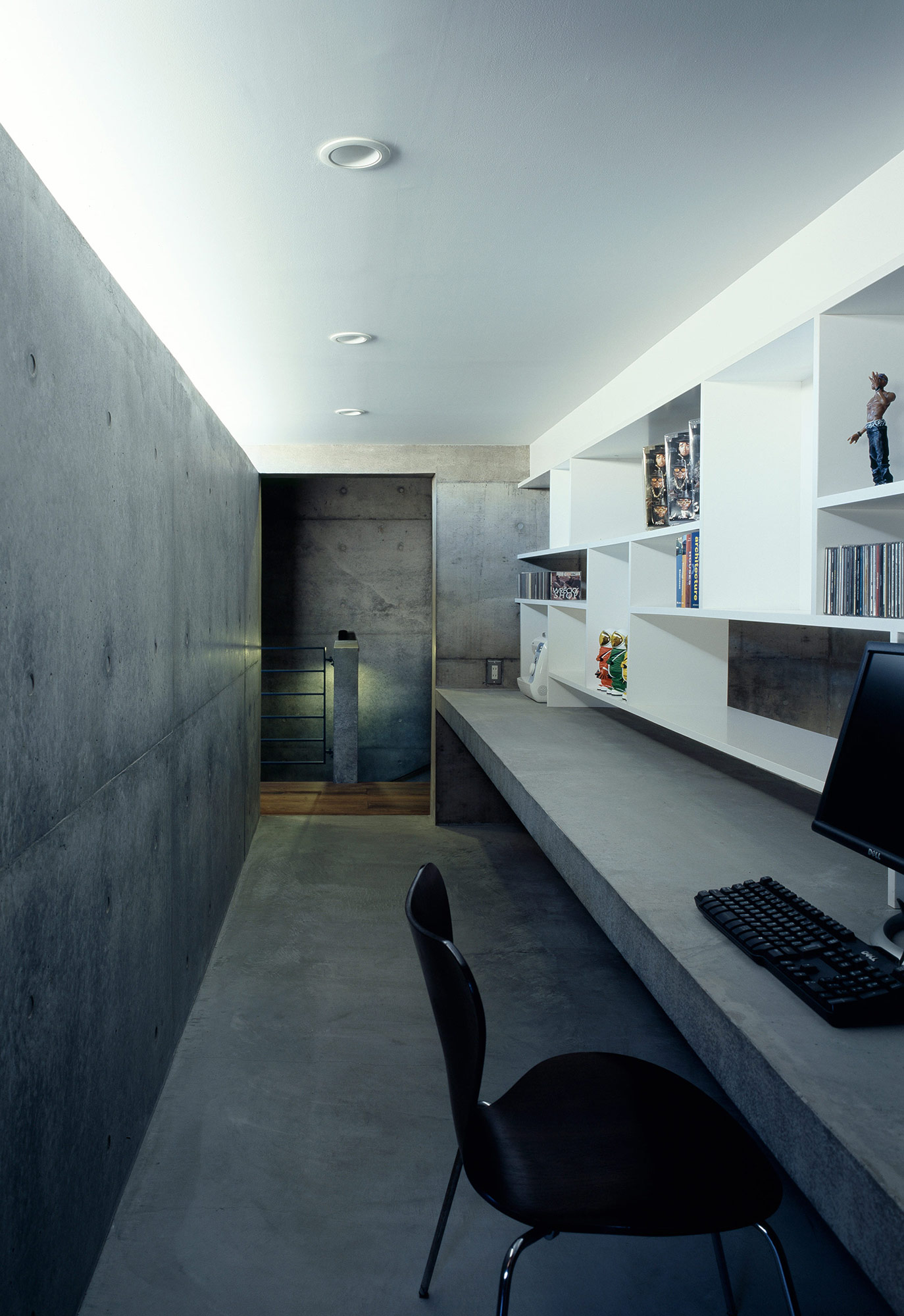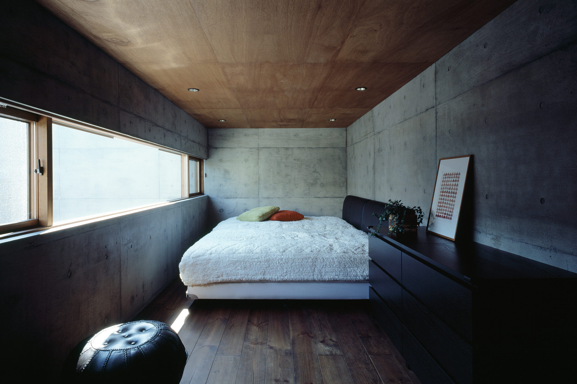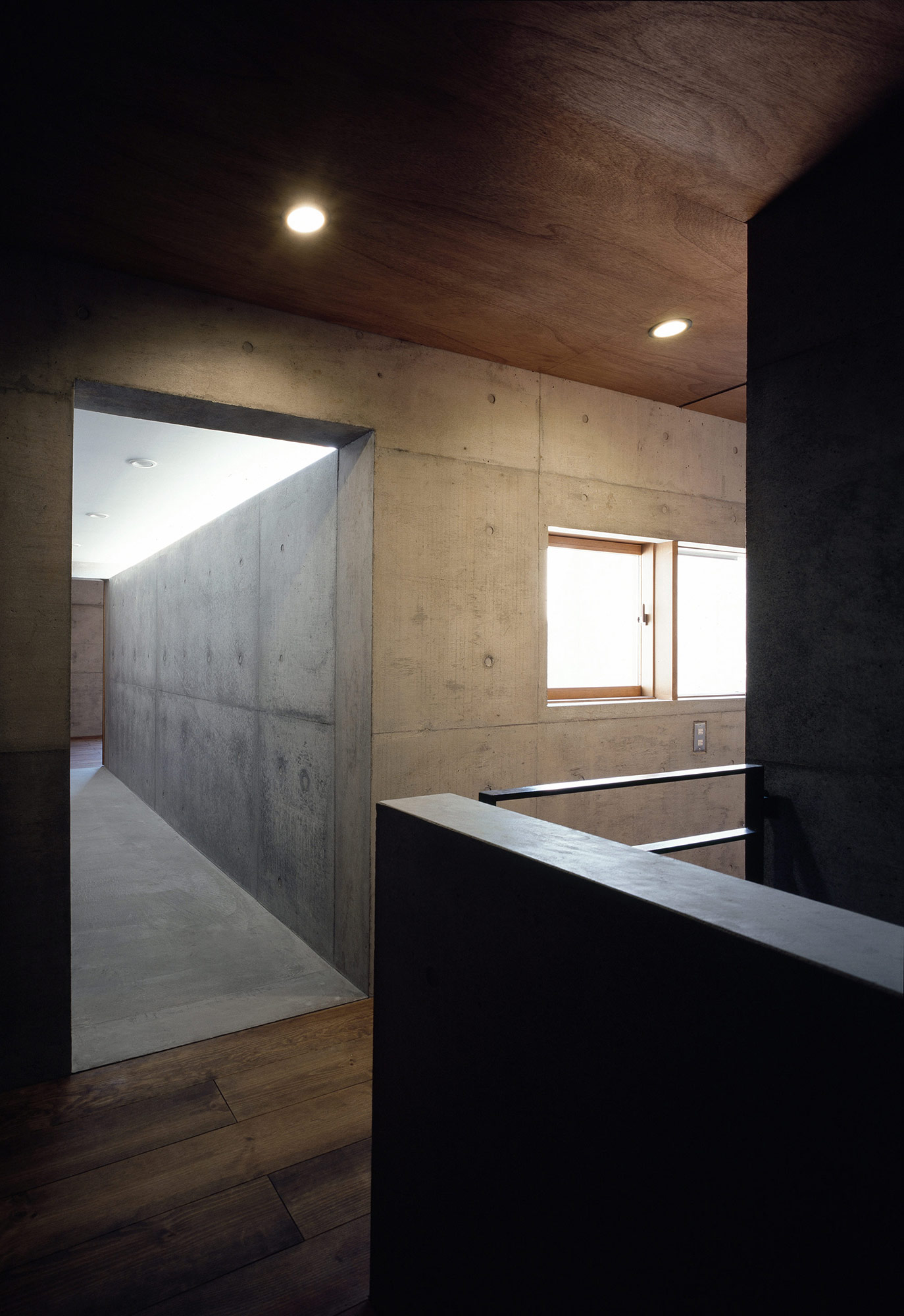 建物は、各機能をもった4つのコンクリートの箱を噛みあうように配置し、その隙間に挿入された開口部は中庭を含めた各スペースを繋ぐとともに、四方から豊かな光が差し込み、空間を決定的なものとしている。